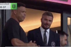 这是迈阿密国际在新球场的首战,美职联官方更新社媒动态,晒出罗纳尔多、贝克汉姆在现场的照片。