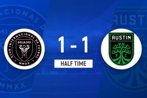 半场-迈阿密国际1-1奥斯汀FC 梅西头球冲顶攻入生涯第903球