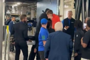 传承!詹姆斯输球后主动与弗拉格在球员通道里拥抱