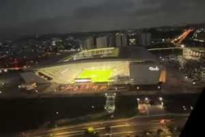科林蒂安前锋德佩因伤缺席此役,他乘坐直升机来到现场,观看这场比赛,德佩社媒晒出视频。
