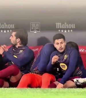 体育资讯04月07日讯 西甲第30轮,巴萨2-1击败马竞的比赛中,有摄像头拍到了替补席上的什琴斯尼让小将巴德吉打掩护,自己侧过身去吃了点什么东西。