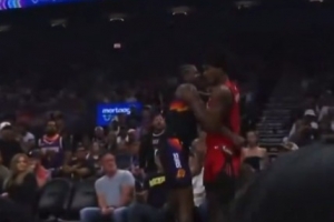 队友成对手!阿门和杰伦·格林相互纠缠 互相拉扯球衣寸土不让