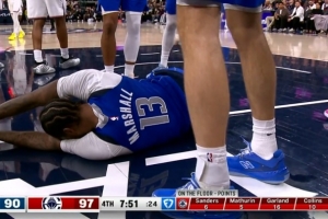 望无大碍!马绍尔防守被马瑟林冲击重摔在地 返回更衣室