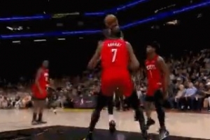 好拽的刚哥!斯玛特外线大空位三分直接打停火箭 个人已经17分