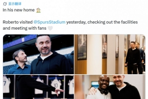 德泽尔比出任热刺主帅,他在昨天参观了热刺球场,并与球迷们见面,俱乐部官方社媒晒出照片。