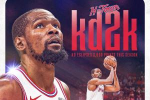 得分高手!杜兰特赛季总得分破2000 个人生涯第8次