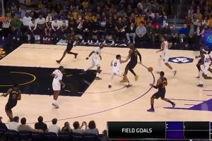 顺水推舟!詹姆斯写意背传 八村塁三分洞穿篮心