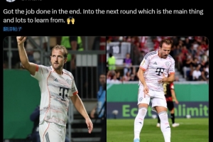 体育资讯8月28日讯 在拜仁3-2击败韦恩,晋级德国杯第二轮后,凯恩更新了社交媒体。