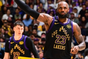 再下一城!湖人官方晒赢球海报:詹姆斯、拉拉维亚登上封面