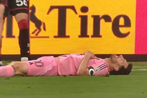 梅西小禁区前扣过对手,兜射中柱后躺在地上叹息