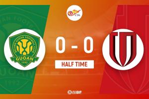 上半场补时5分钟。半场战罢,北京国安0-0成都蓉城。