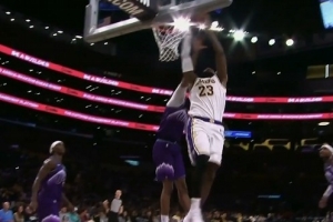 霸王硬上弓!詹姆斯空切接球顶着人强硬上篮打进 还有加罚!