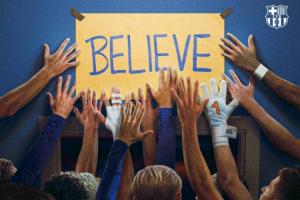 巴萨官方动员欧冠次回合:球员手摸“相信”,致敬《足球教练》梗
