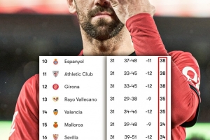 西甲第10到第18仅相差6分,多支球队一场不慎就可能跌入降级区