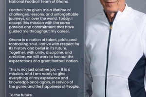 奎罗斯写道:“致亲爱的每一位:我怀着对加纳足协深切的感激之情,以及沉重的责任感与谦逊之心,开启了执教加纳国家队的这一新篇章。足球赐予了我遍布全球的挑战、教训和难忘旅程。今天,我带着指引我整个职业生涯的同样激情与承诺,接受了这项使命。加纳是一个充满天赋、尊严和足球灵魂的国家。我带着对其历史的尊重和对其未来的信念而来。”
