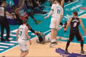 这不看回放?三球用手扒阿德巴约脚后跟致其倒地受伤 已回更衣室