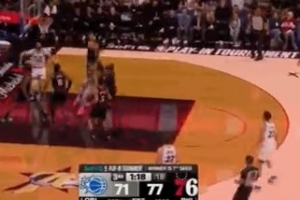 独挑大梁!贝恩冲击篮筐打成2+1 率队继续迫近比分