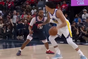 桑托斯点名单打加兰 转身杀入内线轻松得分勇士追平了!