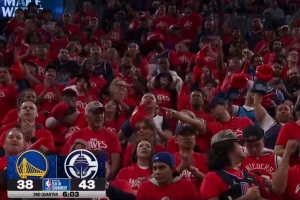 胶着!伦纳德倚住防守中投命中 率队领先5分打停勇士