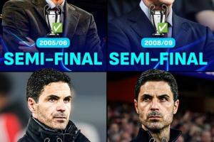 阿尔特塔追平了温格在阿森纳的欧冠半决赛次数