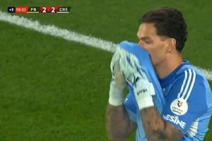 比赛补时第8分钟,里泽斯堡门将后场开球,费内巴切门将埃德松出击到点球点附近但没拿到皮球,里泽斯堡球员萨格南完成读秒绝平。