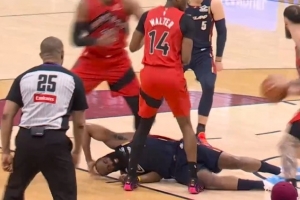 这是主场?哈登拼抢时被击中头部倒地 裁判就在眼前但没有表示