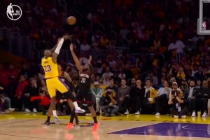 探囊取物!詹姆斯持球单打 撤步中距离稳稳命中