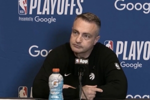 猛龙主帅:“很难知道背后的原因。每一节都有点不同,阵容也在变。这轮季后赛系列赛的每一场都会有所不同。我认为在这个过程中不断学习非常重要,要减少失误,发挥我们的优势。”
