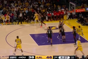 持续发力!斯玛特抛传助攻艾顿空接暴扣 帮助湖人获得两位数优势