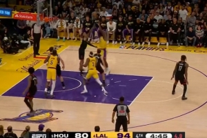 左撇子确实有用!詹姆斯强推小贾巴里·史密斯 转身左手勾手命中