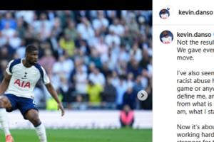 体育资讯04月19日讯 热刺主场2-2战平布莱顿后,凯文·丹索在社交媒体上遭受了严重的种族歧视,丹索在社交媒体上回应赛况以及遭到的种族歧视。