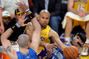 帕金斯说:“有这么一个家伙,虽然我个人私下里跟他合不来,但我必须以一个球员的身份向他致敬……当你谈论那种能随时开启和关闭模式的能力,谈论82场常规赛球员和16场季后赛球员的区别时。那个人绝对是德里克·费舍尔。德里克·费舍尔在他职业生涯的大部分时间里,看起来就像是全联盟最差的首发控球后卫之一。但当需要他挺身而出,在科比和奥尼尔身边,或者在科比和加索尔身边打季后赛时,那家伙绝对会站出来。他瞬间就完成了蜕变。”