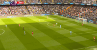直接躺下睡觉内托右边路带球进攻,禁区边缘脚下一滑自己摔倒
