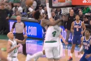对飙扣篮!乌布雷单臂隔扣武切维奇 塔图姆变向双手暴力灌篮