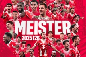 拜仁官推晒海报庆祝球队提前夺得德甲冠军,凯恩、诺伊尔C位
