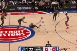 争胜的态度!萨格斯鱼跃倒地抢下球权 滑行两三米远