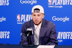 布克:是的,我的意思是,他去年的季后赛打得非常棒。我当时密切关注了他的表现,他在总决赛里打球,甚至在总决赛拿过40分。所以,他们队里的每个人都是威胁。显然亚历山大是蛇头,但他创造了很多机会,让他们有很大的空间去自由发挥。今晚我们对亚历山大进行了包夹,派了很多人去防他,但他还是能为队友创造机会。