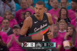 冲劲十足!文班强攻内线 跳步闪开防守上篮打中