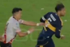 比赛第61分钟,帕雷德斯身后推倒河床球员弗雷塔斯,随后阿库尼亚上前推翻帕雷德斯为队友出头。