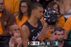 科内特补扣砸进 文班起身鼓掌庆祝 身后有亮点