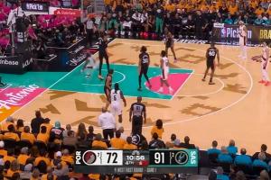 站帽来了……格兰特激情对抗文班后倒地 文班原地长臂站帽