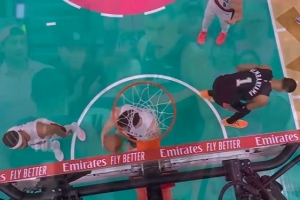 这怎么防!文班亚马强打篮下 顶着两人左手勾手强硬打成2+1!