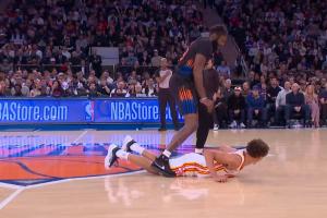 这明显故意的!米切罗掩护推倒丹尼尔斯 然后跨人越过后者头顶吃T