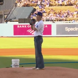 跨界联动!孙兴慜身穿道奇衣服,为洛杉矶道奇比赛开球