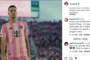体育资讯9月27日讯 布斯克茨社媒宣布本赛季结束后退役,梅西留言致敬。