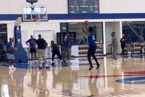 怕不怕?恩比德训练结束后加练三分 手感柔和以五连中收尾