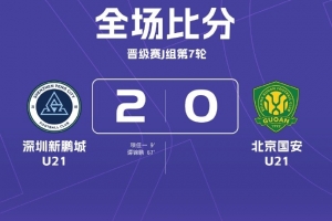 中青赛U21组晋级赛J组第7轮赛果:新鹏城2-0国安、浙江1-0河南