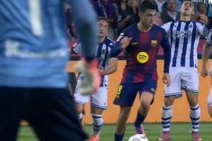 比赛中,佩德里丝滑带球过掉了皇家社会球员巴雷内切亚,后者无奈摊手。