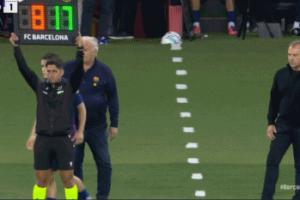 西甲第7轮巴萨2-1击败皇家社会,在伤停补时的最后1分钟,佩德里被换下。