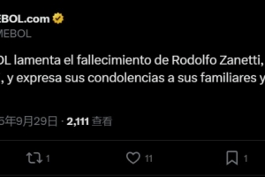 南美足联悼念萨内蒂父亲:向他的家人和朋友致以诚挚的慰问